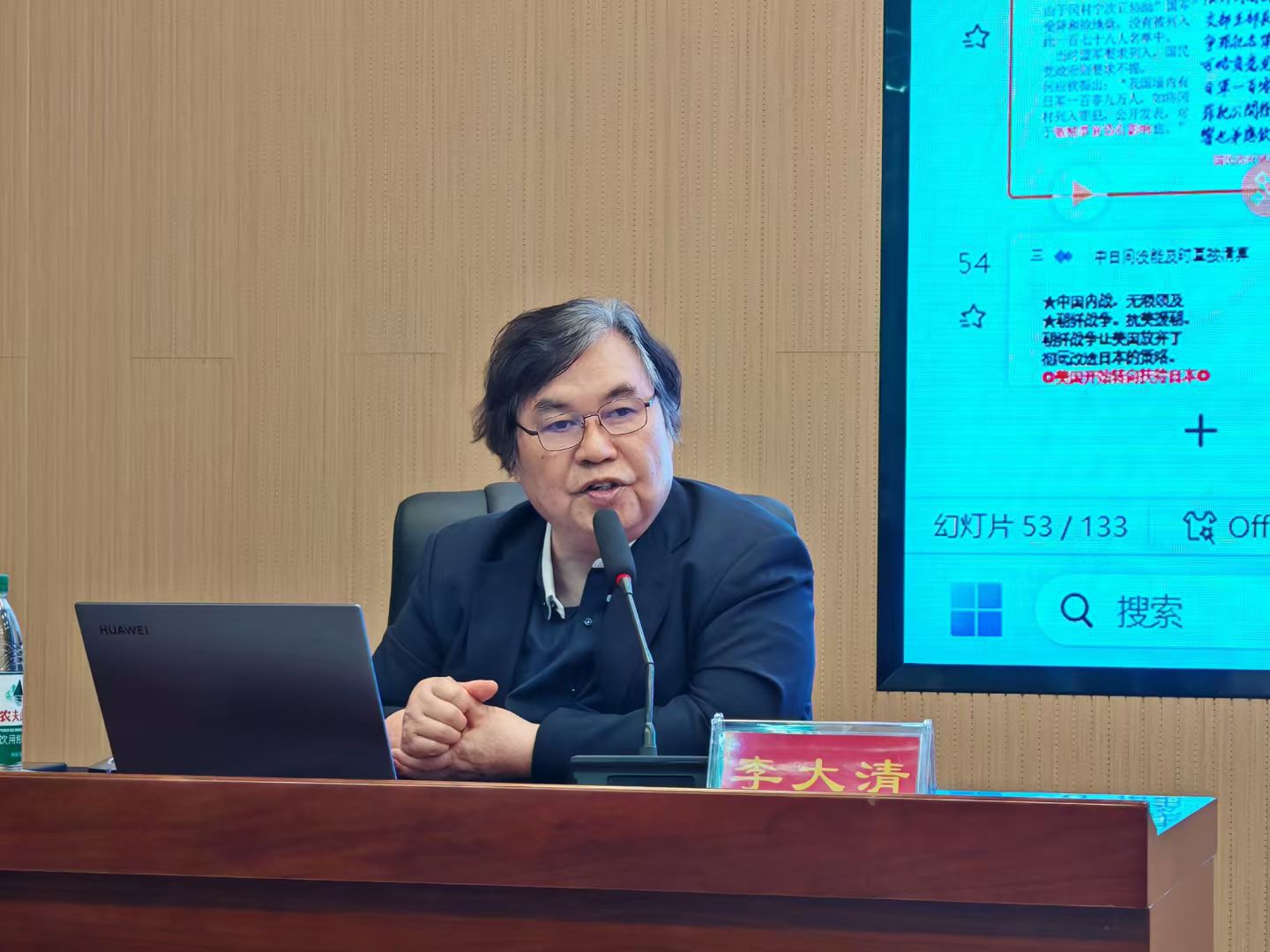 讲座伊始,李教授分享了自己的经历,包括从事双语讲座、为多位日本首相做翻译等,并介绍了他研究的和制汉语和和制汉字。随后,李教授深入探讨了中日交流中的认识障碍。在讲座的最后,李教授阐释了《论语·里仁》中的经典名句“德不孤,必有邻”,并通过这一主题为在场的师生们提供了对中日关系的全新视角,启发大家思考如何促进中日间更深层次的理解与合作。